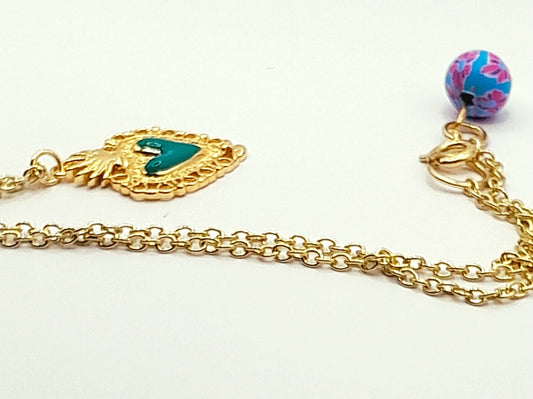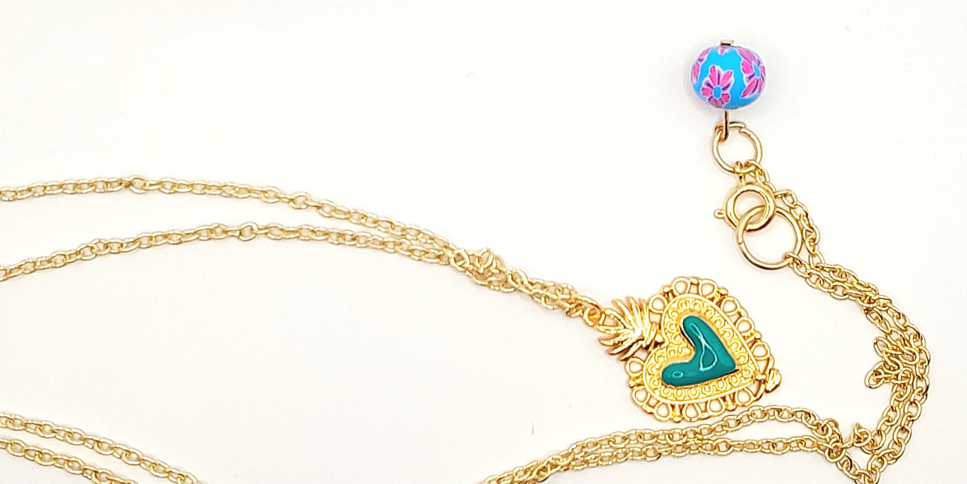 Piece of My Heart Necklace - Enamel Heart Charm on Gold Chain