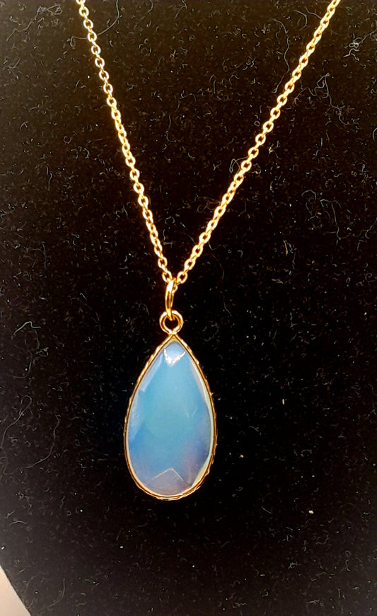 Teardrop Stone Pendant Necklace (Turquoise, Purple Jade, Smoky Quartz, Moonstone)