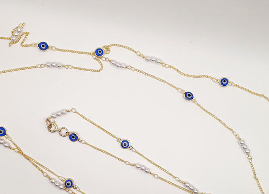 Long Layered Gold and Evil Eye Chain Necklace