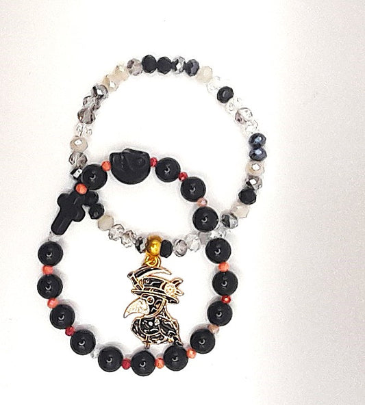 Raven & Plague-Themed Beaded Bracelet Set