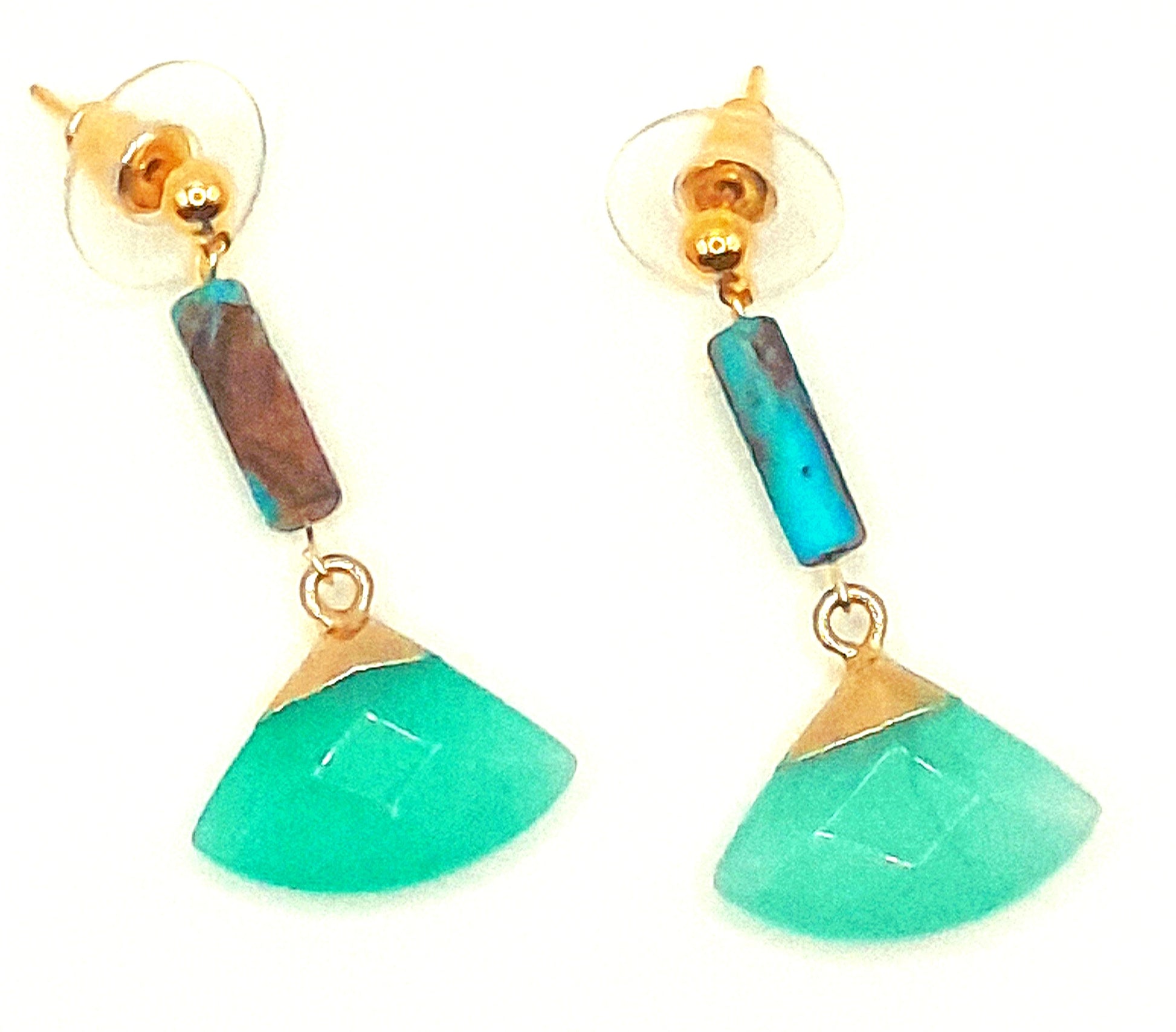 Beautiful Blooms & Ocean Blues: Agate Stone Earrings Set on 18K Gold Plated Studs