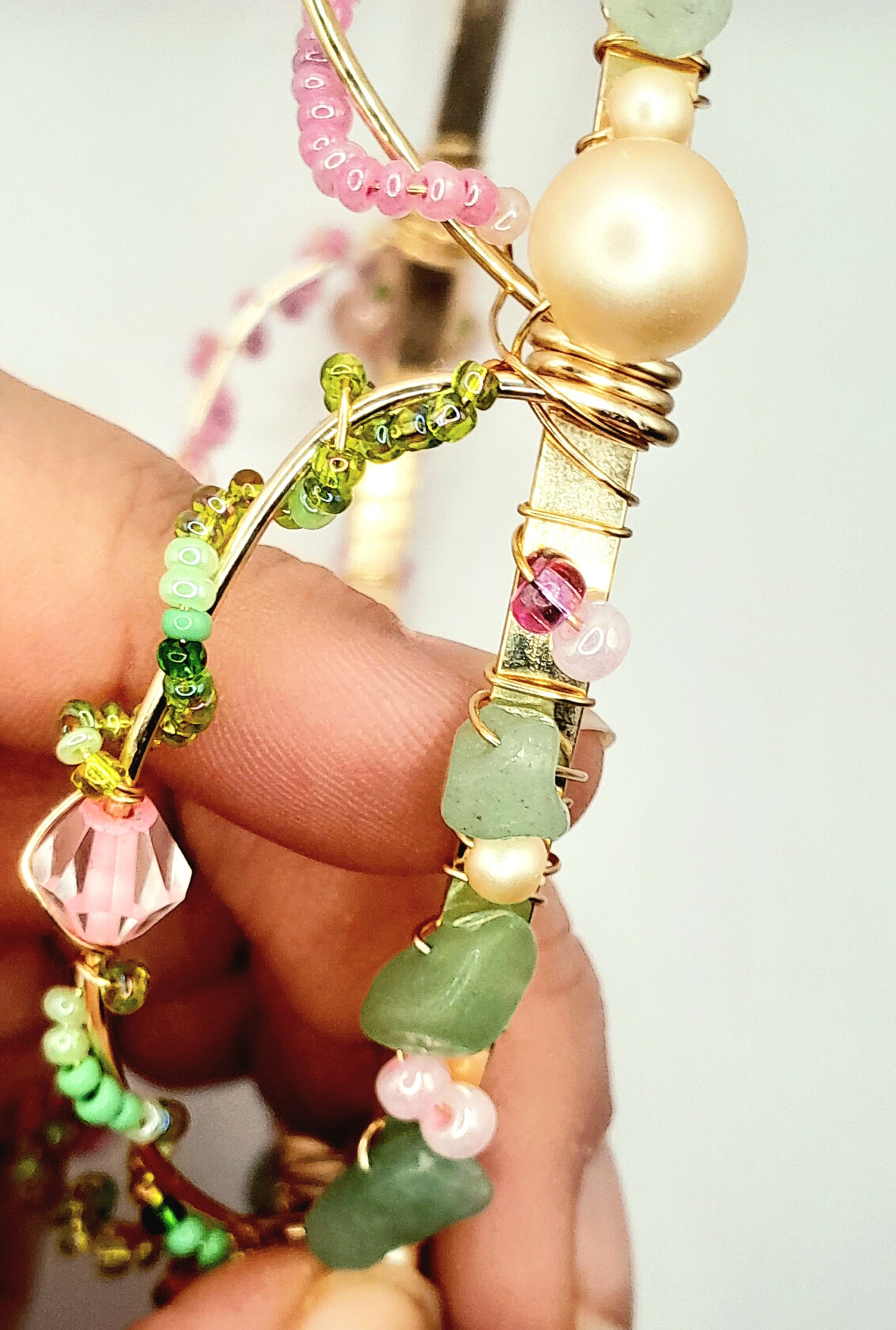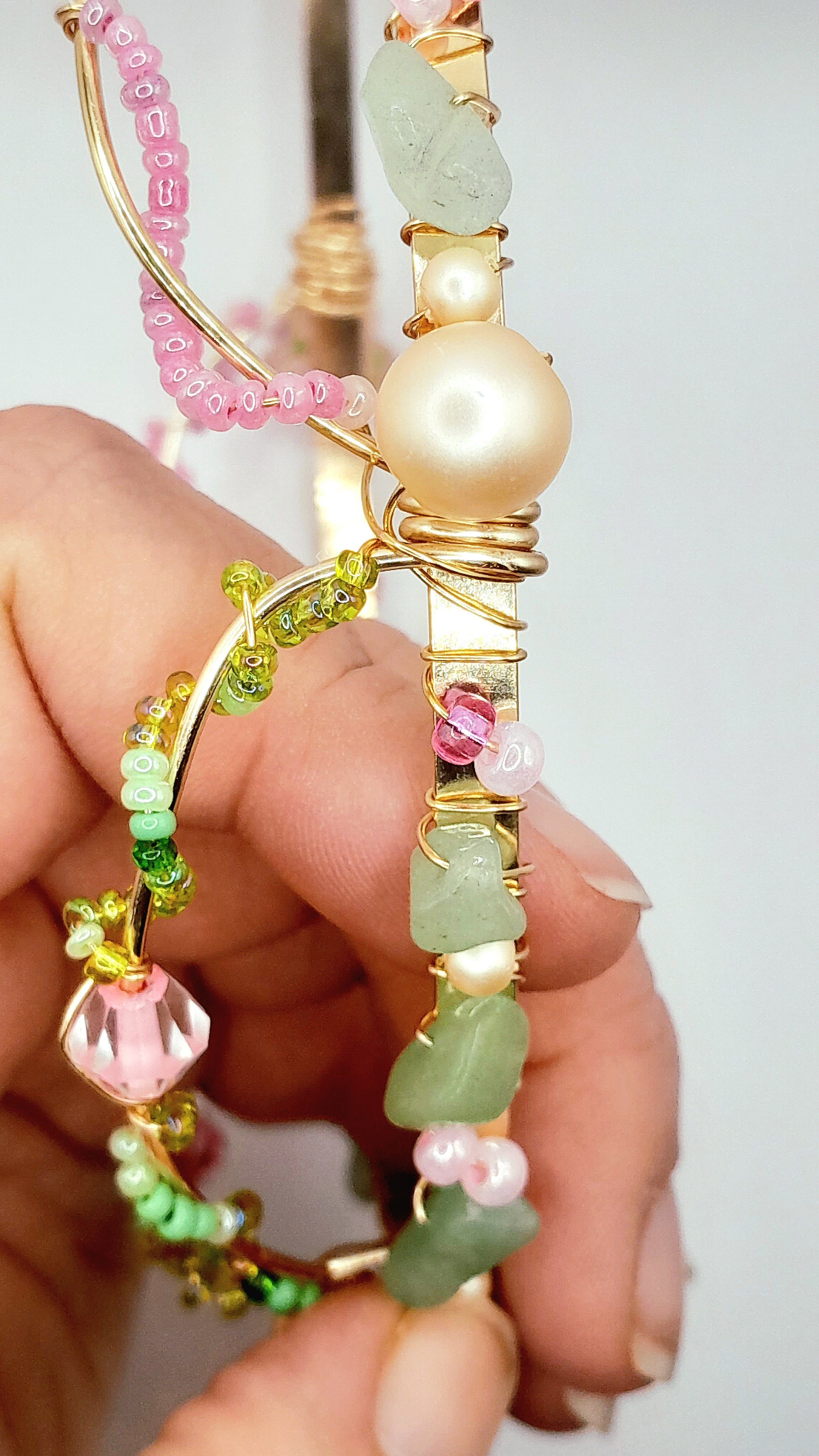 Blossom - Gold Handwired With Pink Pearls, Green Aventurine, and Glass Beads Headband