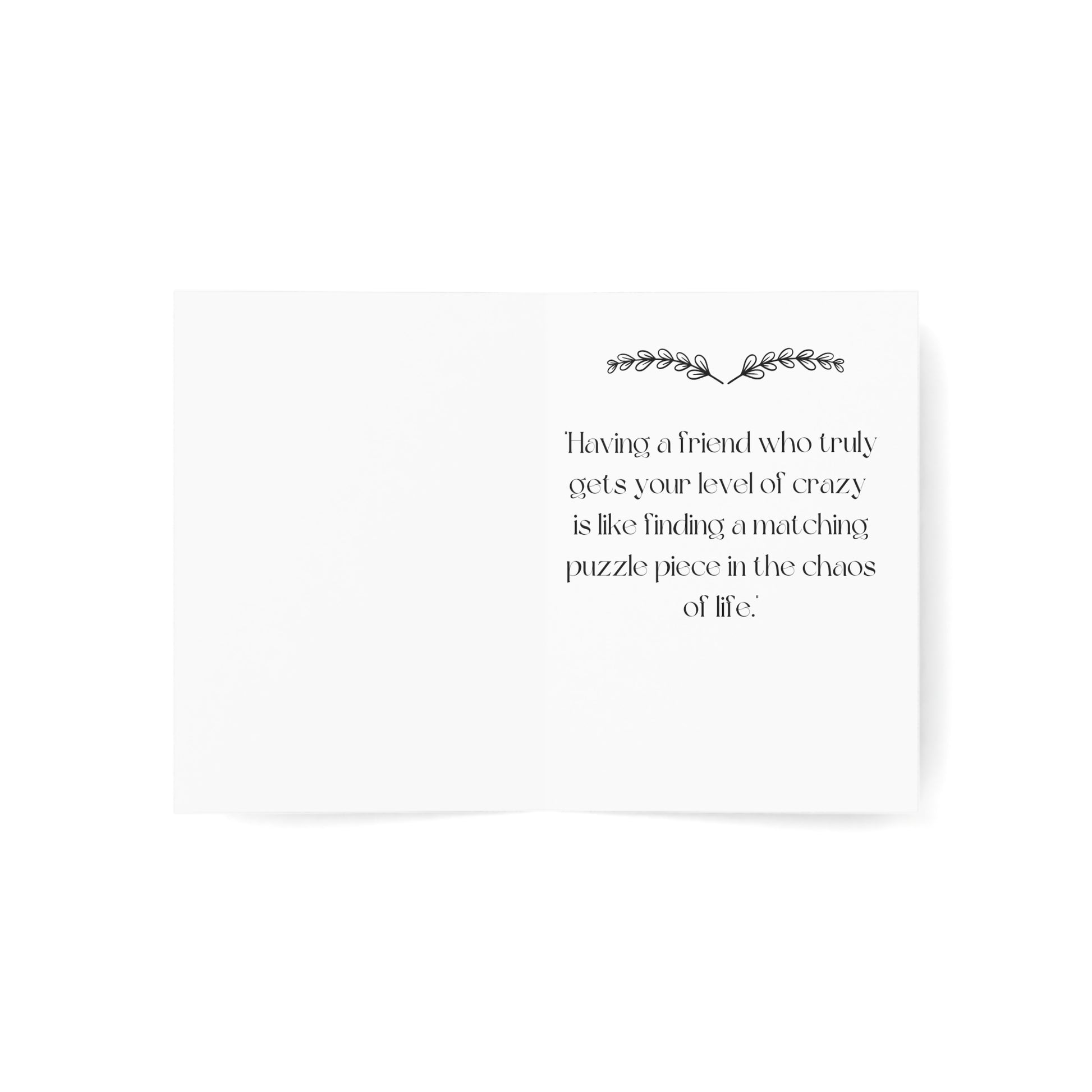 Introducing our delightful "Crazy Friends & Coffee" Greeting Card, perfect for celebrating that special bond with a friend who truly understands your quirks and love for coffee! This whimsical card captures the essence of your unique friendship with a charming design and witty message. Send a heartfelt thank you or simply let your friend know how much their understanding means to you. Crafted with attention to detail and printed on high-quality cardstock, this card is a lasting token of appreciation. Embrace the joy of shared laughter and endless cups of coffee with this delightful greeting card that exemplifies your crazy, fun-loving friendship.