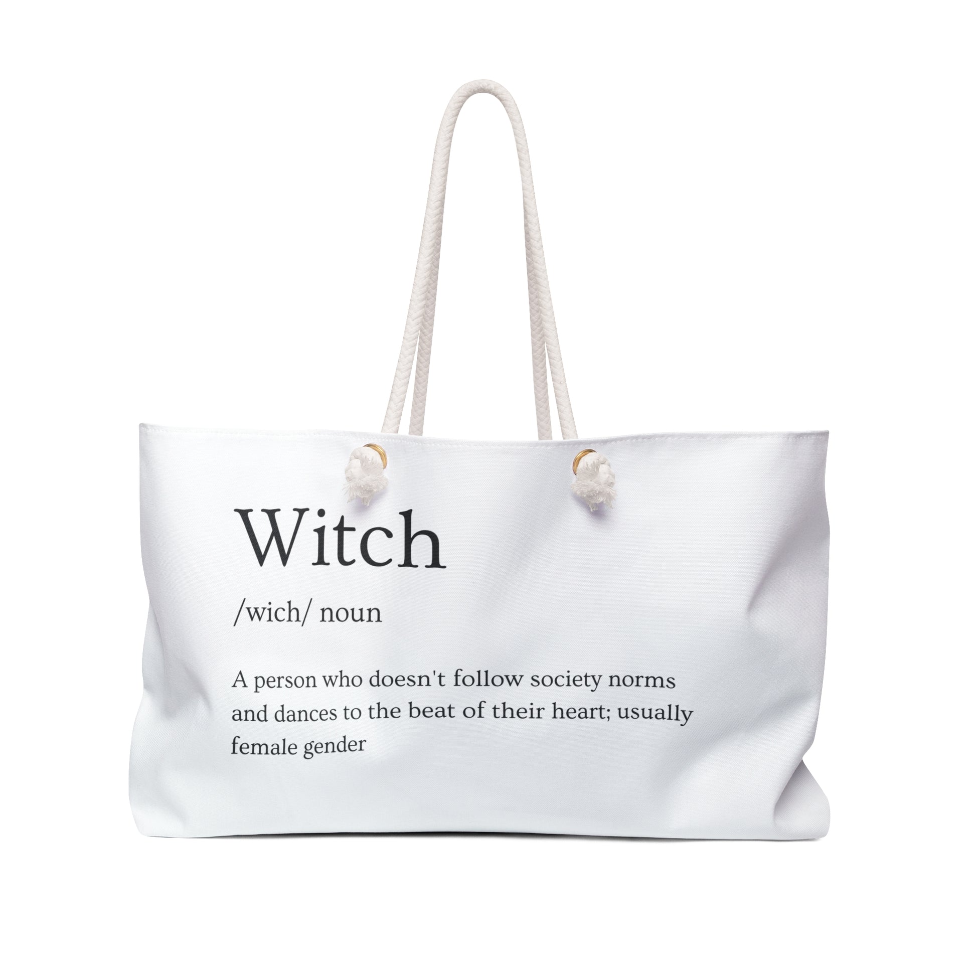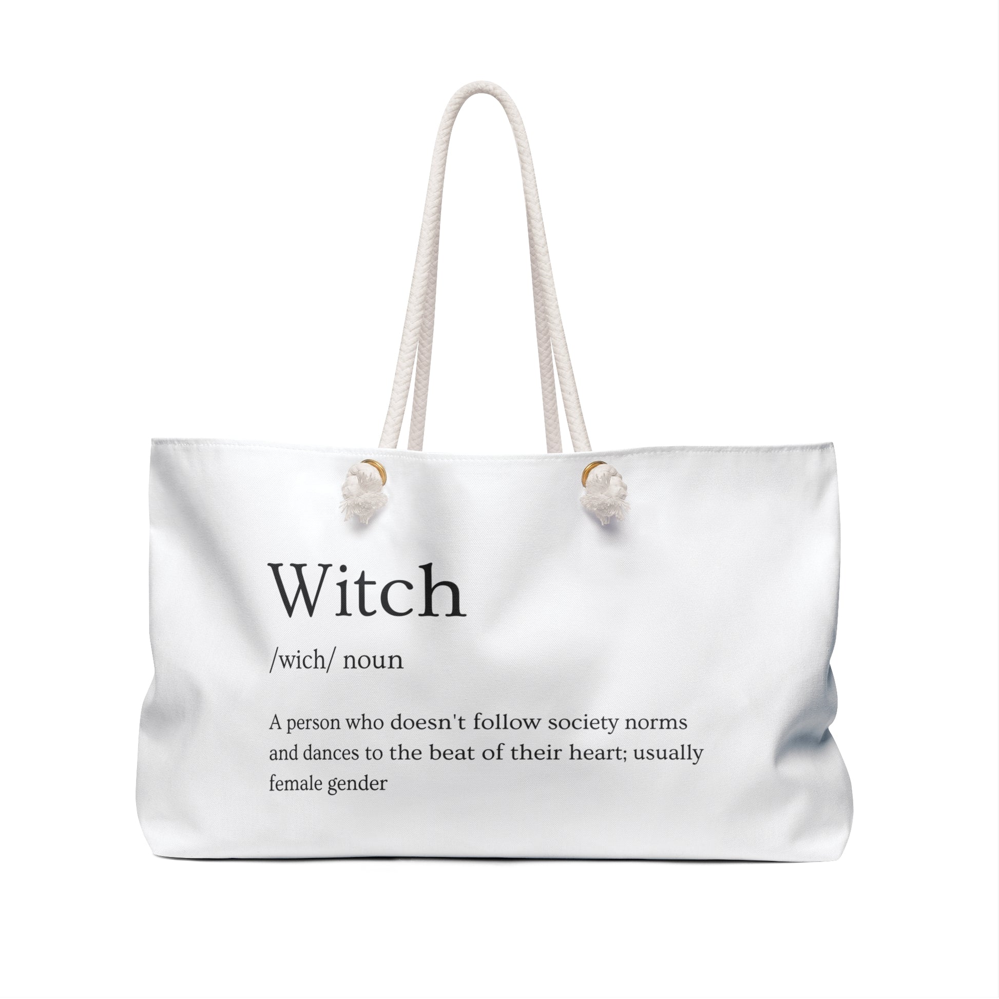 Introducing our trendy and rebellious White Weekend Bag, designed for those who dare to defy societal norms and embrace their unique individuality. Featuring a striking and thought-provoking phrase, "witch - a person who doesn't follow society norms and dances to the beat of their heart," this bag is a testament to the fearless spirits who carve their own path in life.