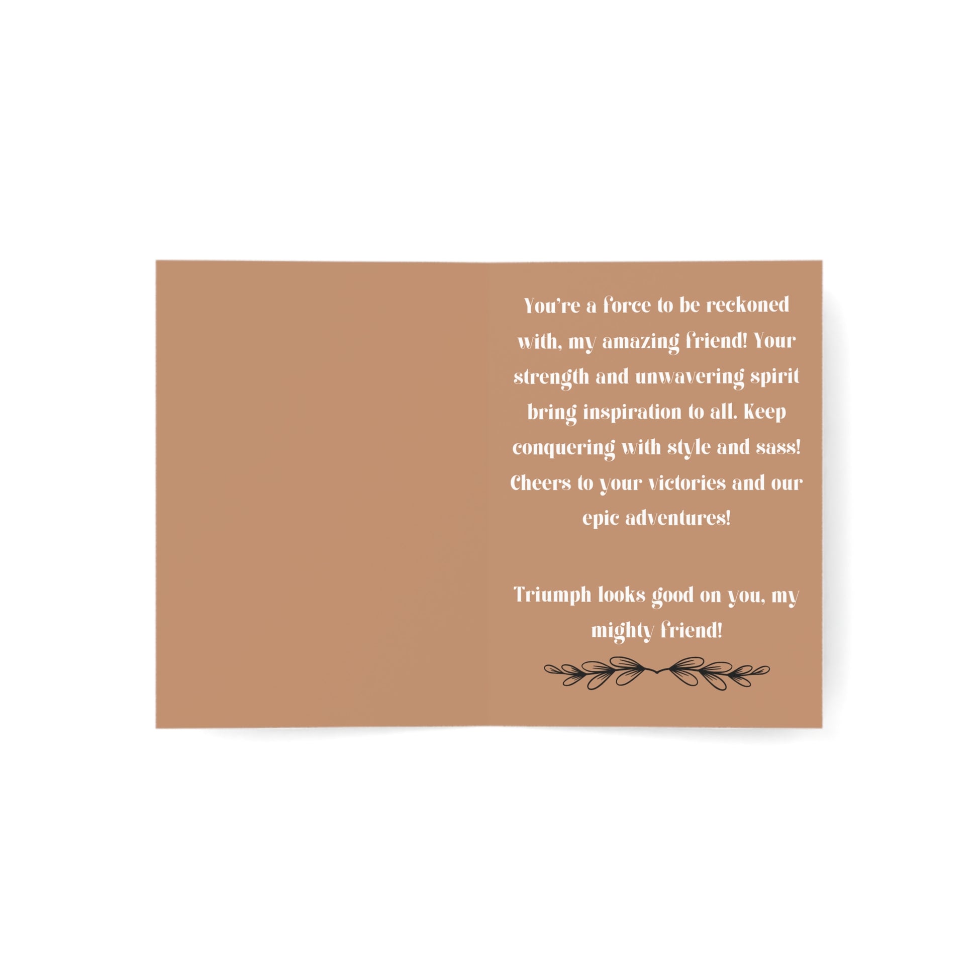 Introducing our empowering Friend's Strength Greeting Card, designed to uplift and celebrate your friend's incredible resilience and triumphant spirit! This beautifully crafted card is a heartfelt way to honor their strength, determination, and perseverance. With a vibrant design and inspiring message, it serves as a beacon of encouragement during challenging times. Ideal for birthdays, achievements, or just to show support, this greeting card is sure to touch your friend's heart profoundly. Crafted with premium quality materials, it ensures a long-lasting keepsake to cherish. Share your love and admiration with this extraordinary card, reminding your dear friend that they are a true inspiration to all.