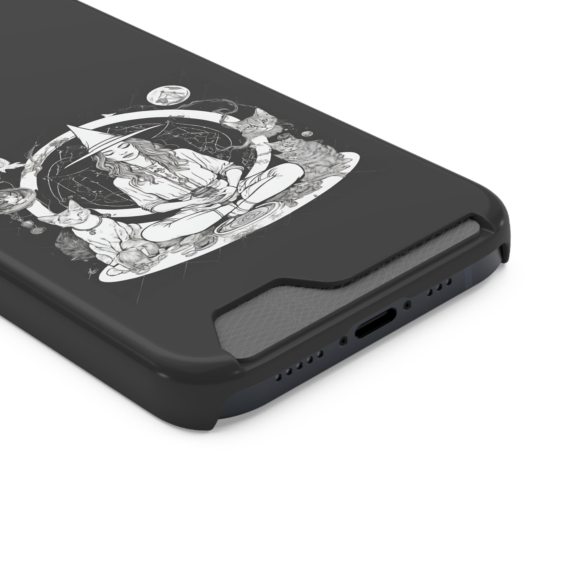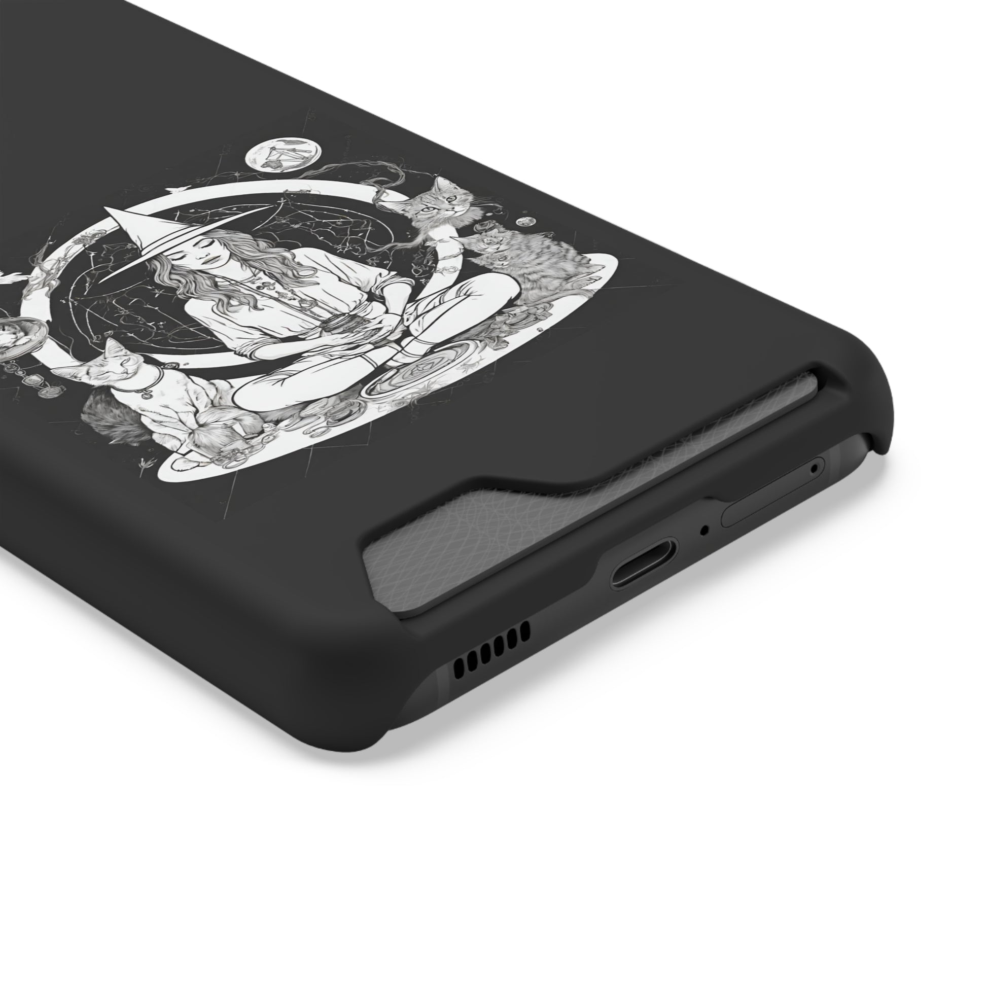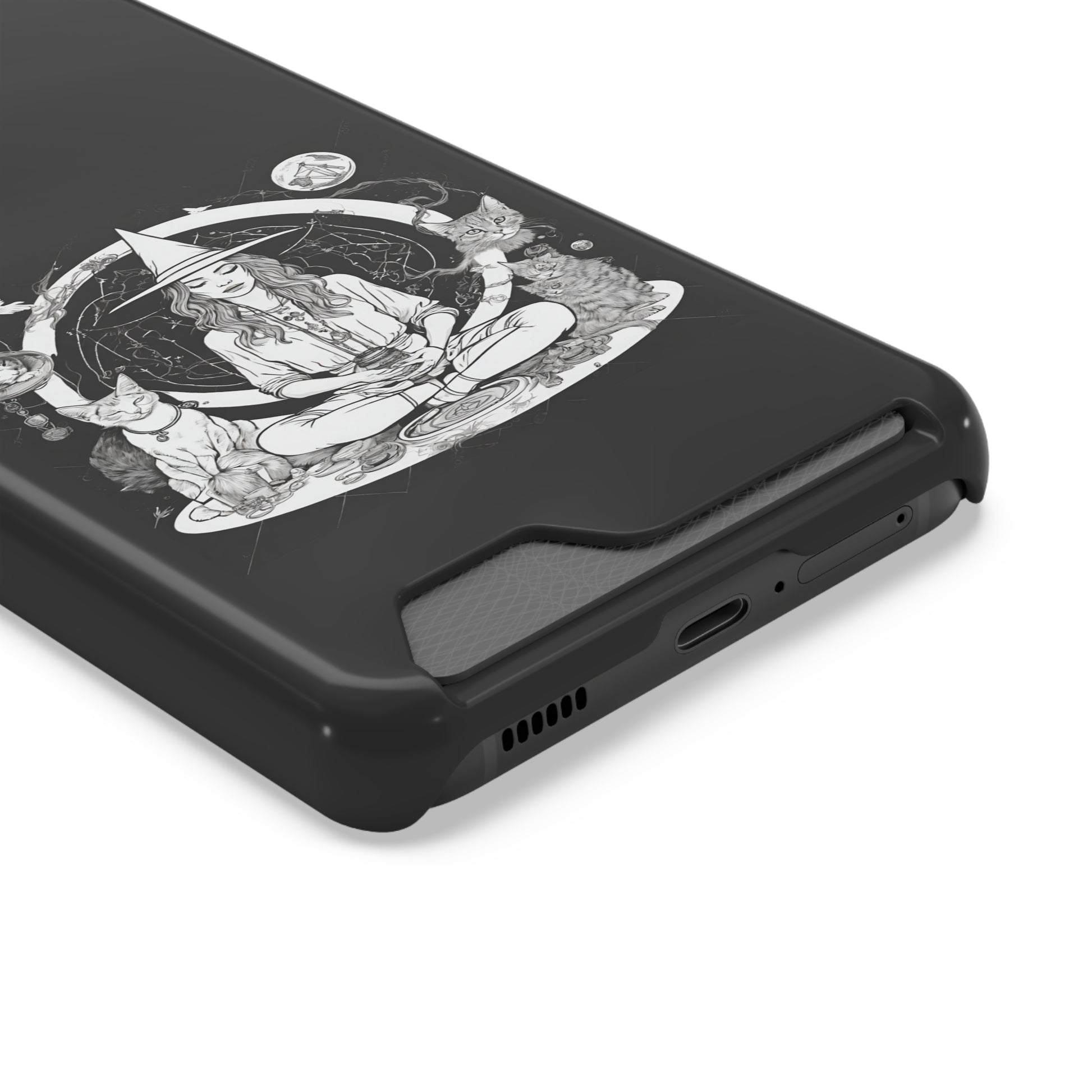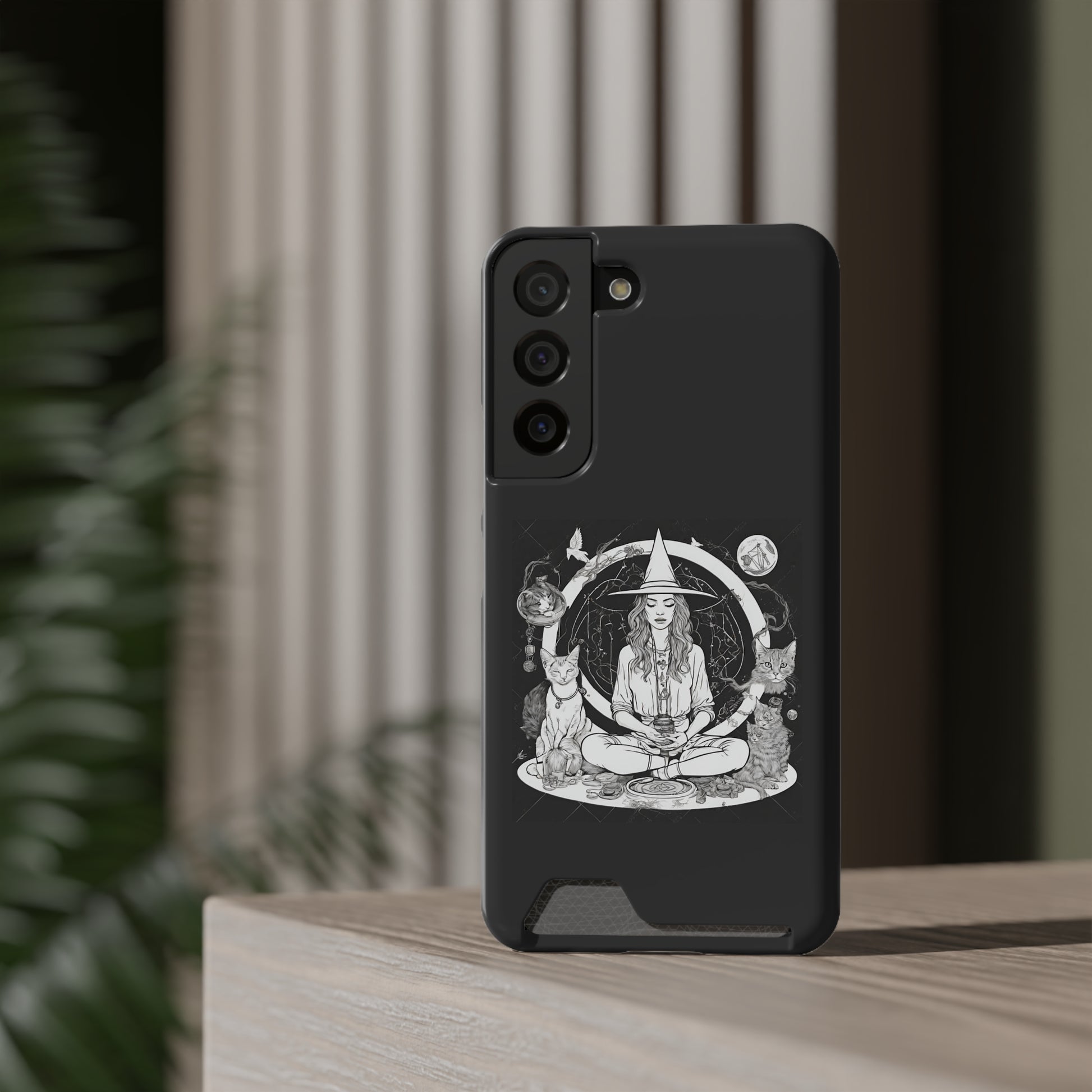 Explore our elegant and functional Dark Phone Case with Card Holder, featuring a mesmerizing image of a woman immersed in deep meditation alongside her spiritual familiars, beautiful cats. This sleek and durable phone case offers unparalleled protection for your device, while the convenient card holder ensures easy access to your essential cards. Crafted with precision and style, our dark phone case not only safeguard your phone from everyday wear and tear, but it also adds a touch of mysticism and spirituality to your life. Elevate your phone's aesthetics and tap into your inner tranquility with this unique and practical accessory.