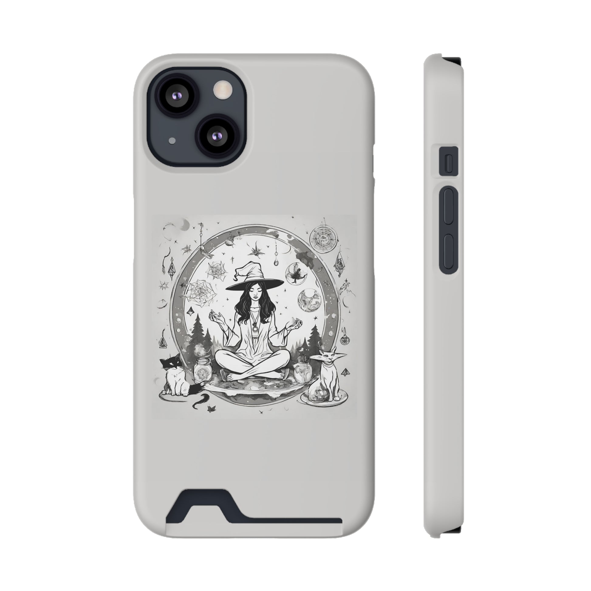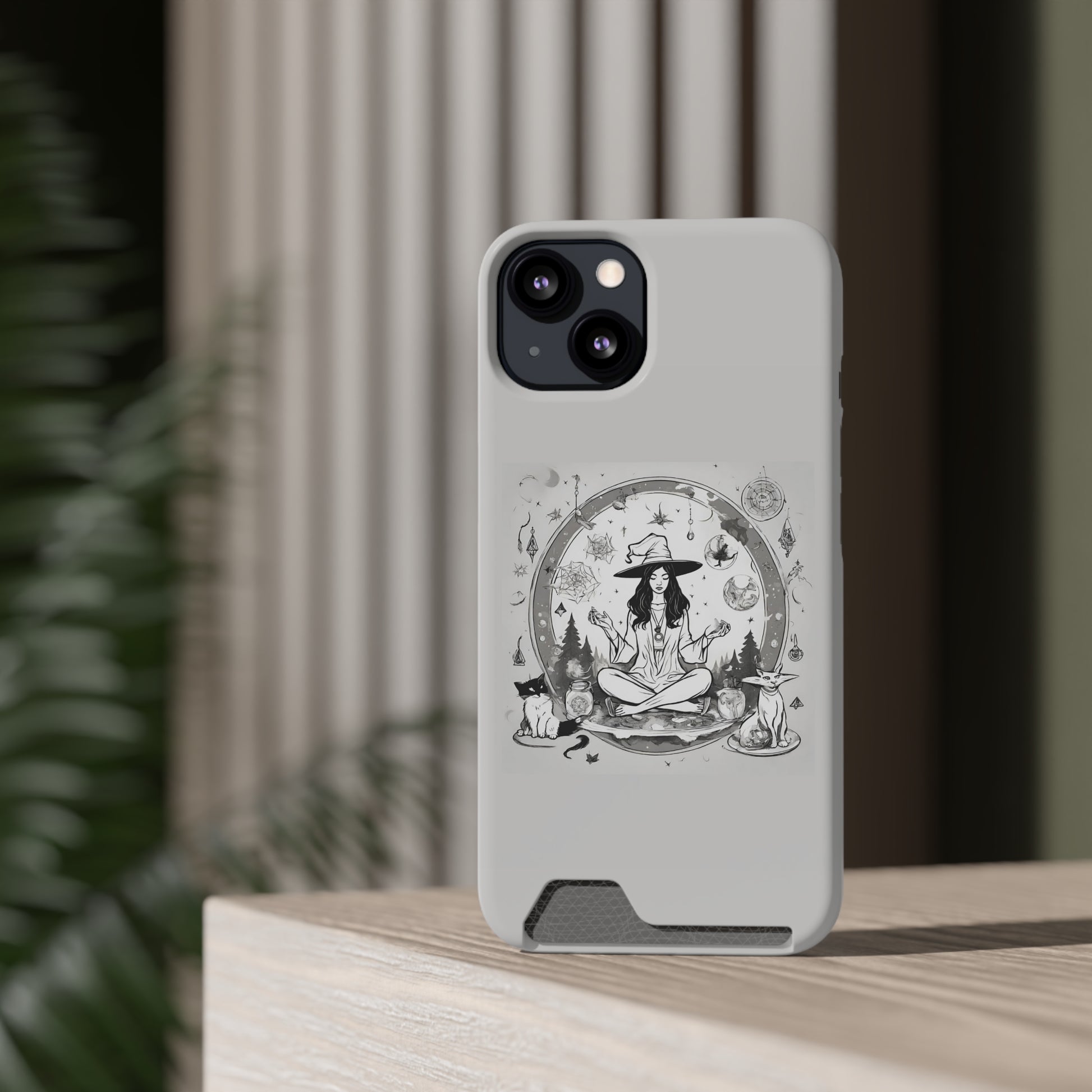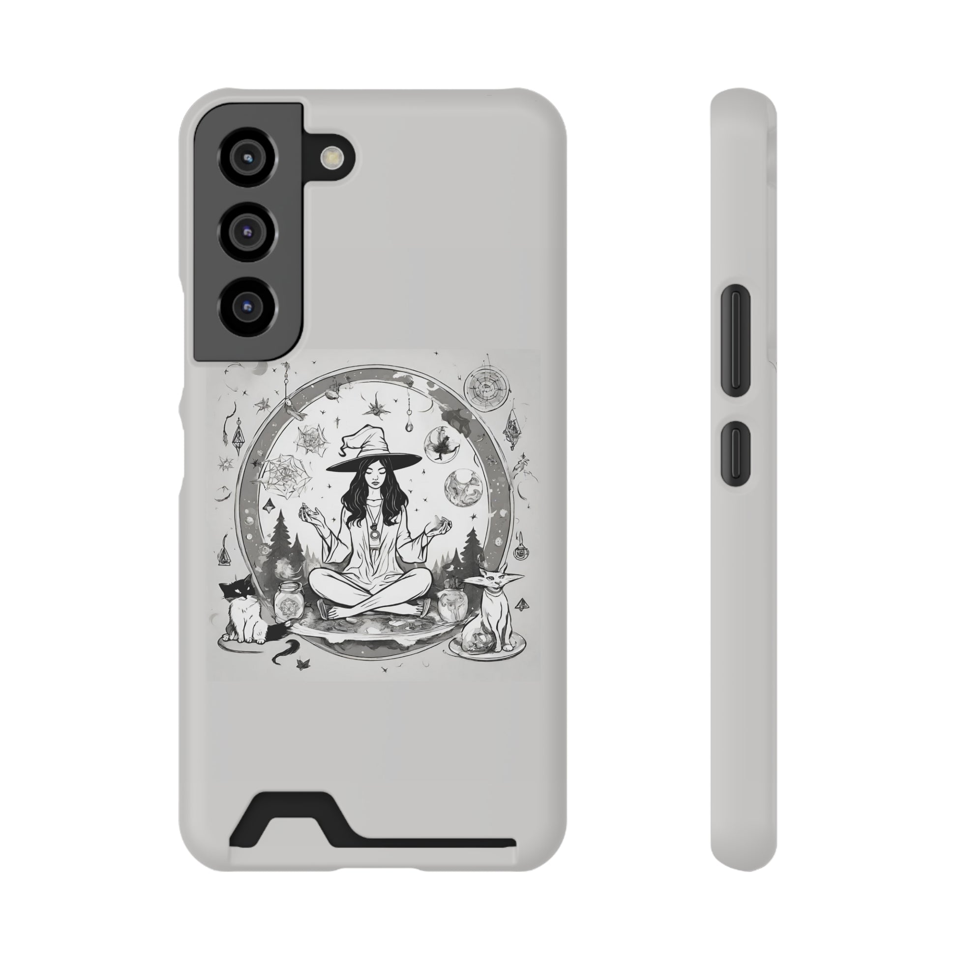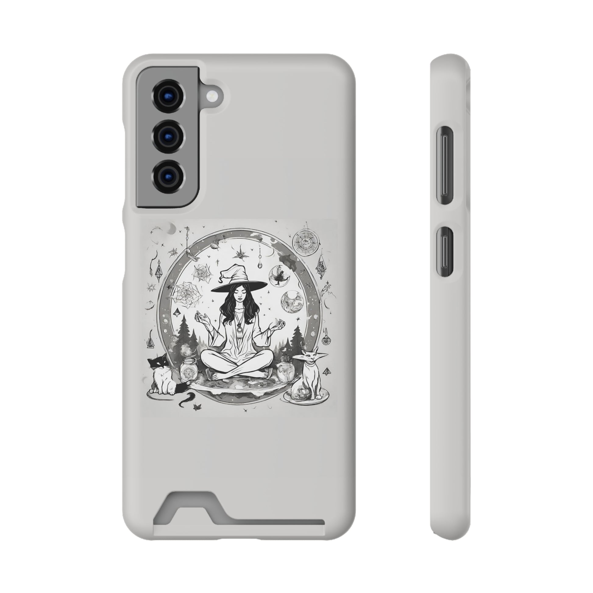 Discover our premium Phone Case with Card Holder, the perfect blend of style and functionality. Embrace convenience with this unique accessory that keeps your daily essentials organized. Crafted with precision, the case features an enchanting image of a modern girl deep in meditation, surrounded by mesmerizing mystic items. The vibrant colors and intricate details truly bring this design to life. Beyond aesthetics, our case offers reliable protection against drops, scratches, and everyday wear and tear. It's designed to accommodate your cards, ensuring easy access whenever you need them. Elevate your smartphone experience with this captivating phone case, a must-have for the fashion-forward and spiritually inclined individuals alike.