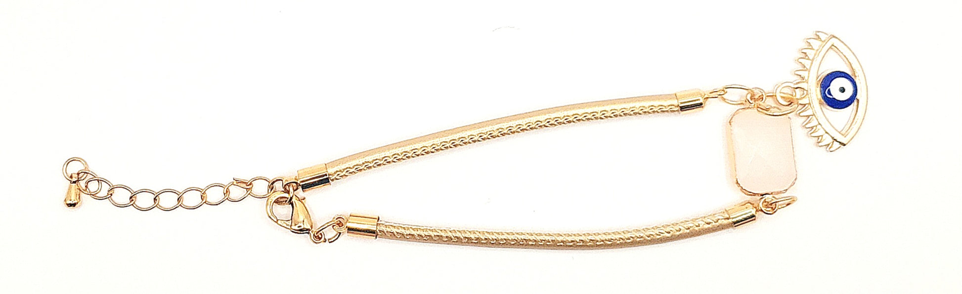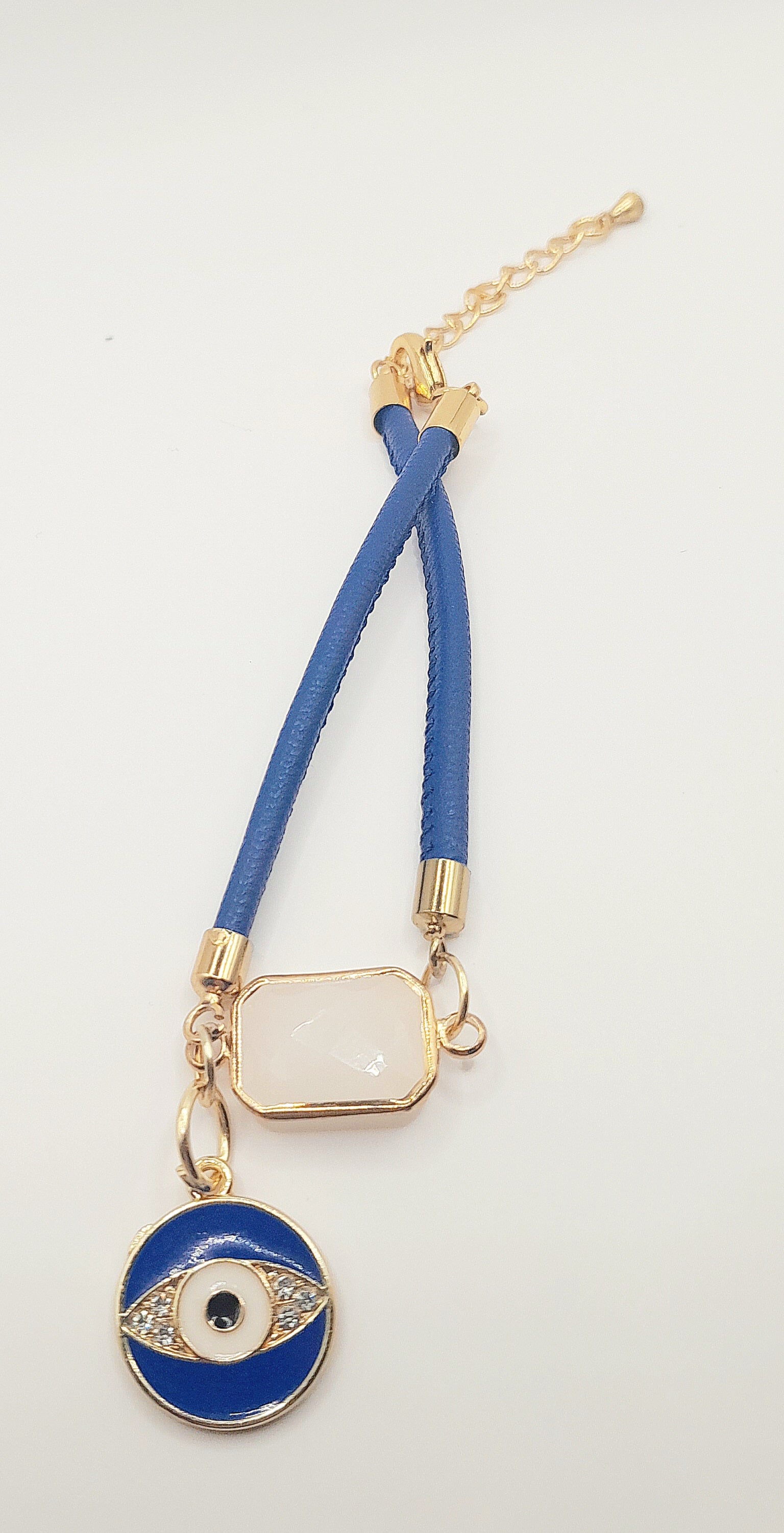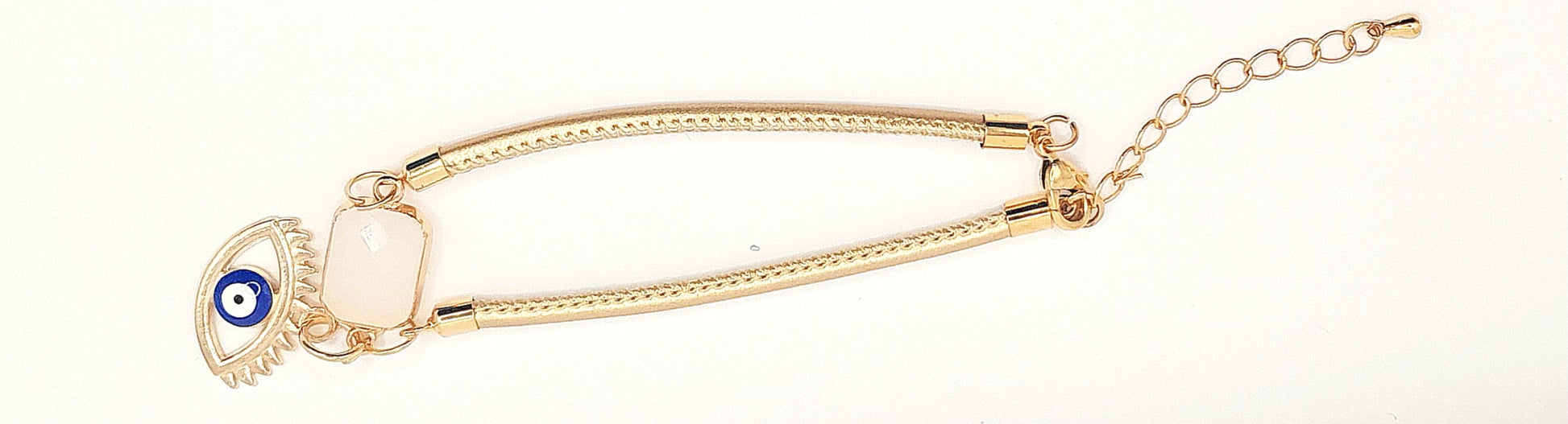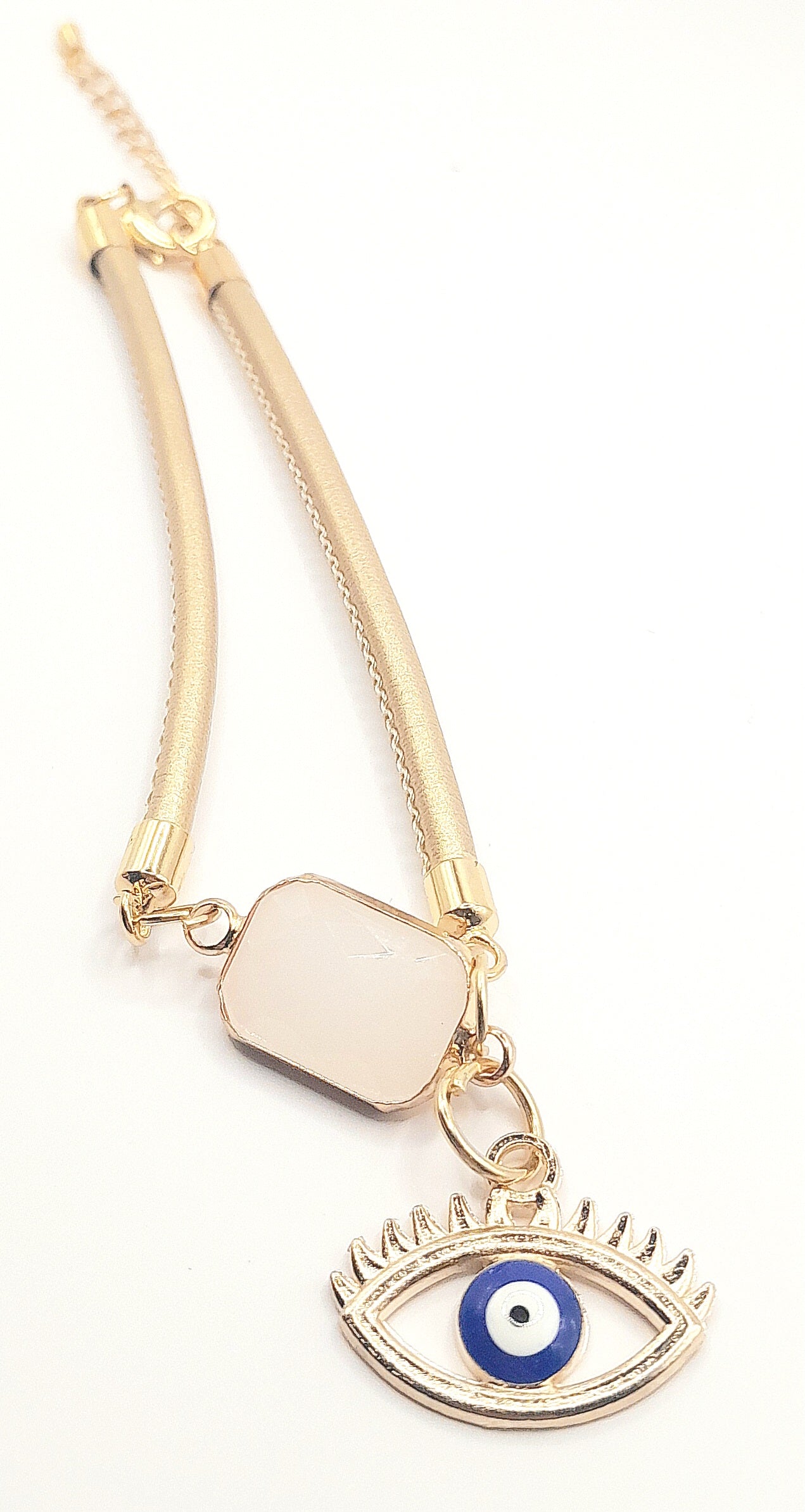Moonstone and Evil Eye Adjustable Fabric Strap Bracelet