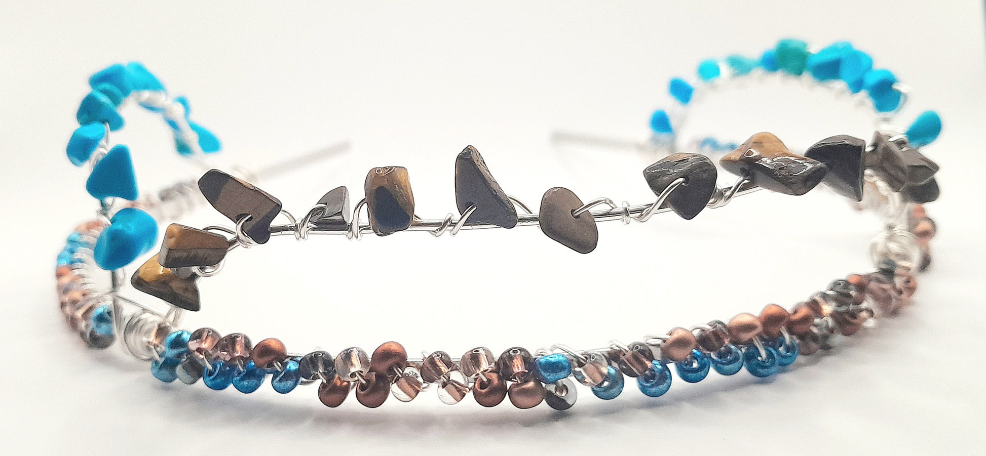 Elevate your style and tap into your inner power with this handwired Beaded Headband. Don't miss out on this empowering accessory. Order now and experience the transformative energy of Tiger Eye and Blue Turquoise!