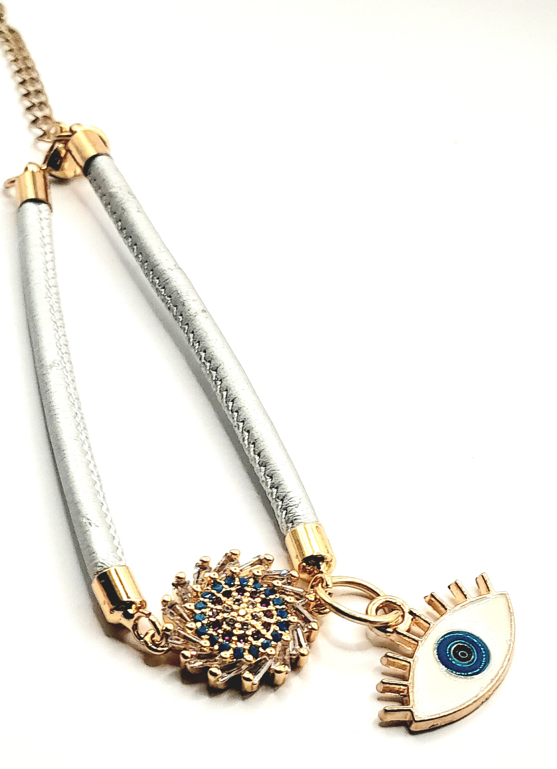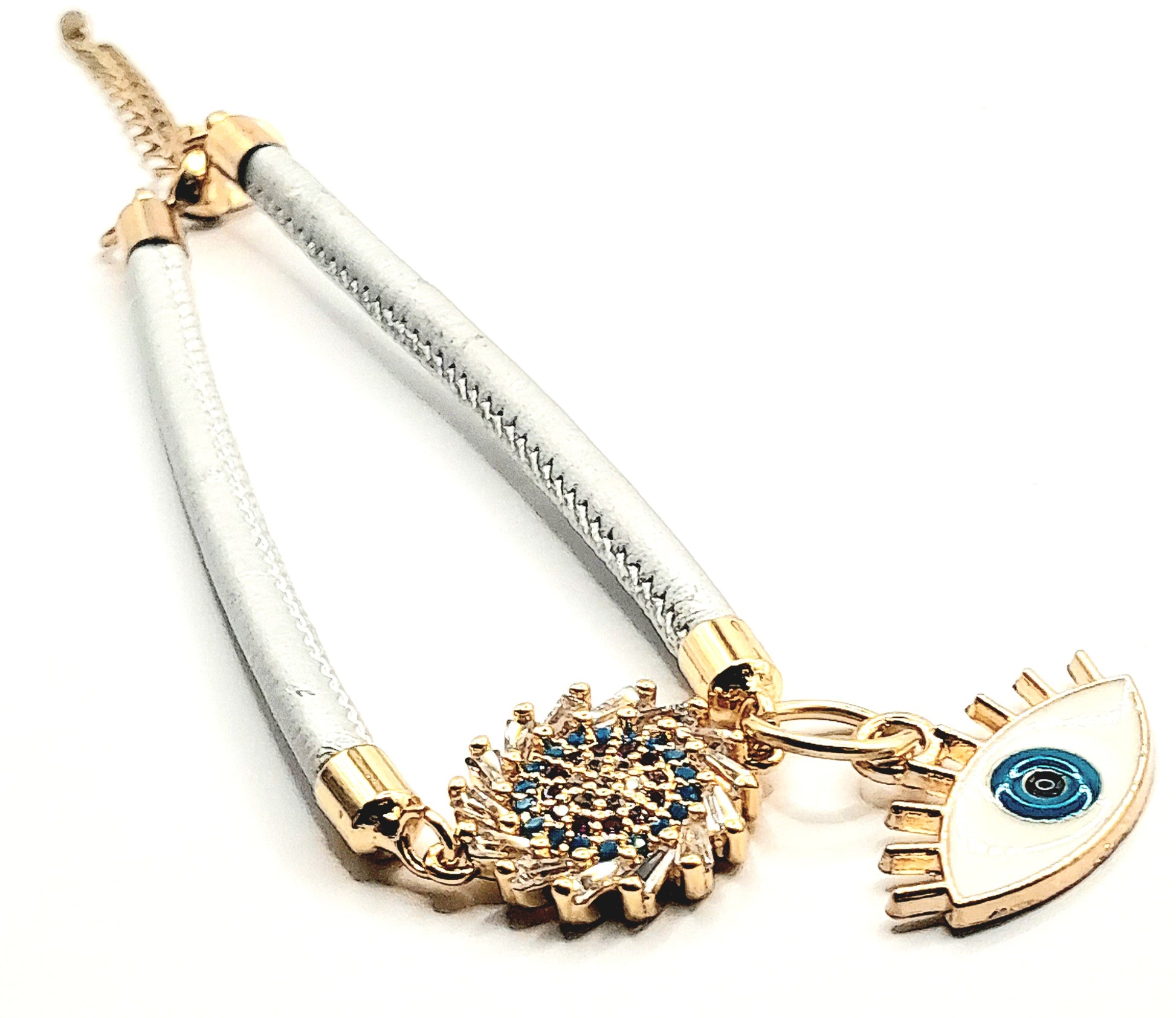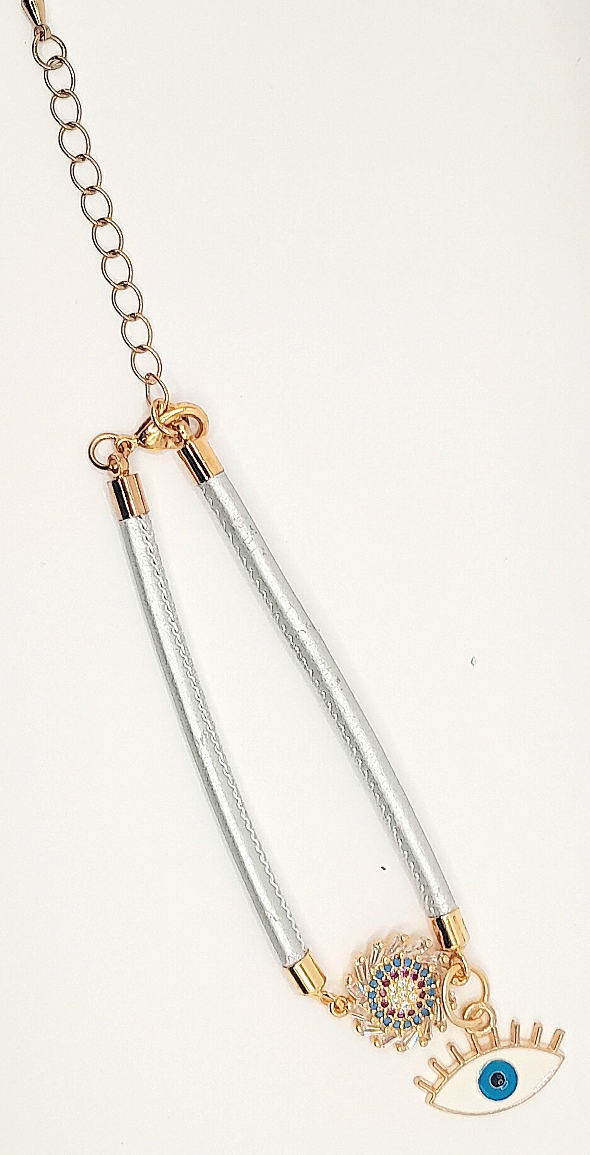 Enhance Your Style and Ward Off negativity with our Silver Strap Adjustable Bracelet! This eye-catching accessory features a captivating Wheel of Fortune center design, adorned with sparkling cubic zirconium stones for a touch of elegance. The Evil Eye charm adds an extra layer of protection against negative energy, ensuring you stay balanced and shielded. Perfect for both everyday wear and special occasions, this bracelet promises to make you stand out while boosting your positive energy. Elevate your style and banish negativity, order now!