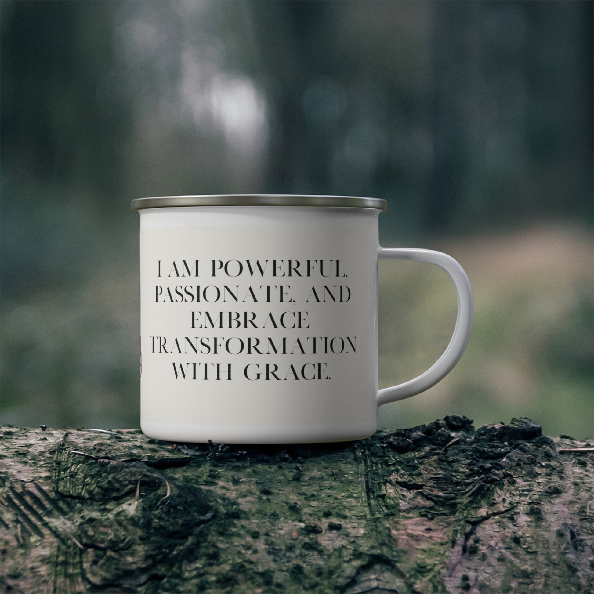 - Inspiring Affirmation: Emblazoned with the empowering words, “I am powerful, passionate, and embrace transformation with grace.,” this mug is a daily reminder of your celestial strengths.