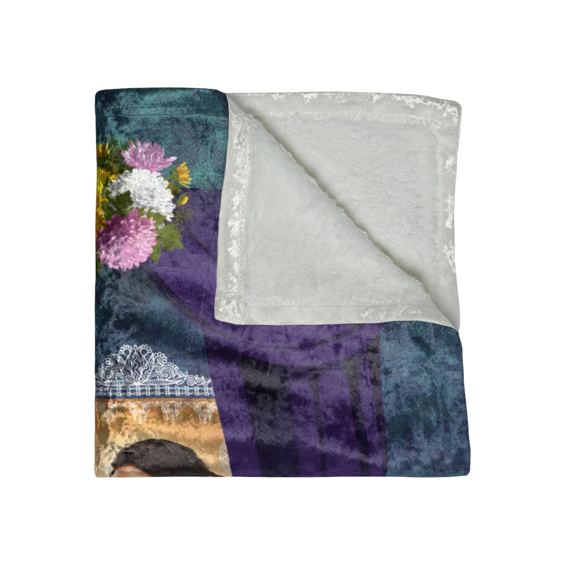 Super soft, super comfy—this crushed velvet blanket with an original custom design will be the perfect addition to the living room couch. It's made from high-quality, durable 100% polyester fabric with zig-zag stitches on its edges.
